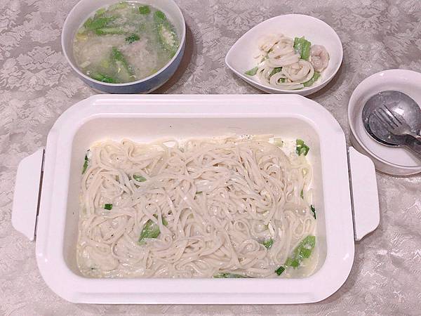 白色的深鍋可以煮火鍋或是燉飯