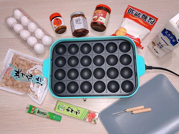 低筋麵粉、烤肉醬、麻辣醬、鰹魚粉、雞蛋